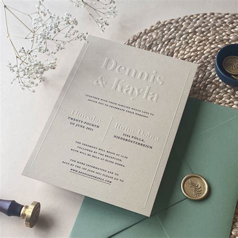 Embossing is a versatile technique that allows you to experiment with various designs, fonts, and textures. Whether you prefer classic floral motifs, intricate lace patterns, or modern geometric shapes, embossing can bring your vision to life. It adds a tactile element to your invitation, making it visually captivating and inviting to touch.