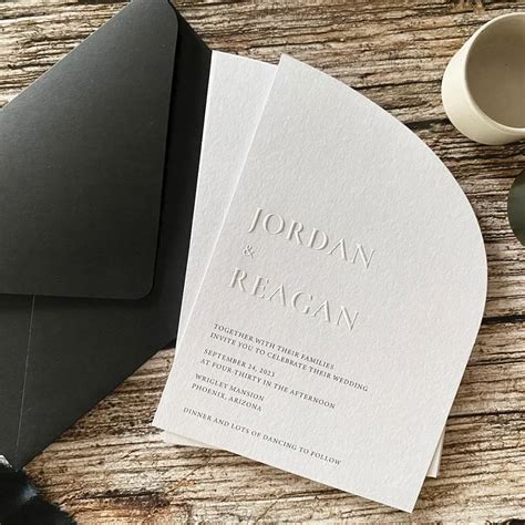 Custom embossed invitations can be further enhanced with additional elements such as foil stamping or letterpress printing. Foil stamping adds a metallic finish to specific areas of the design, creating a stunning contrast against the embossed patterns. Letterpress printing, on the other hand, utilizes a press to imprint the design into the paper, resulting in a deep impression that adds an extra layer of texture.