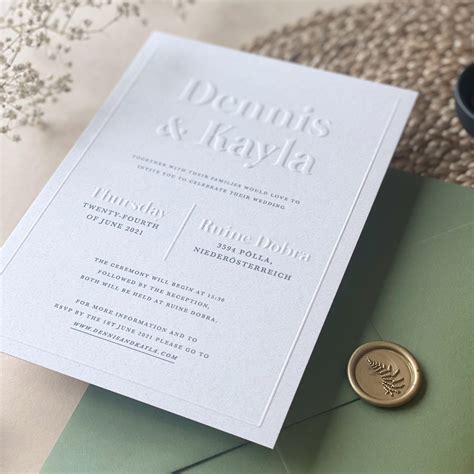 Now, you might be wondering how to incorporate blind embossing into your own invitations. Well, fear not! There are countless design possibilities to explore. From delicate floral motifs to intricate monograms, the options are truly endless. You can also experiment with different paper textures and colors to further enhance the overall look and feel of your invitations.